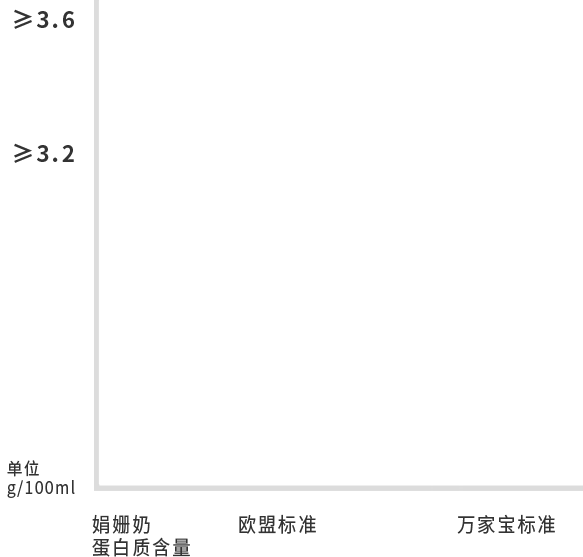 【1】来源:黑龙江省万家宝鲜牛奶投资有限公司化验室对2019-2022年娟姗奶牛基地所生产娟姗生牛乳的检验结果数据统计。【2】来源:娟姗纯牛奶蛋白质含量3.6g/100g,对比国家标准GB 25190《食品安全国家标准 灭菌乳》蛋白质指标≥2.9g/100g要求,蛋白质含量高出20%以上(折算蛋白质高出比例为24%)。